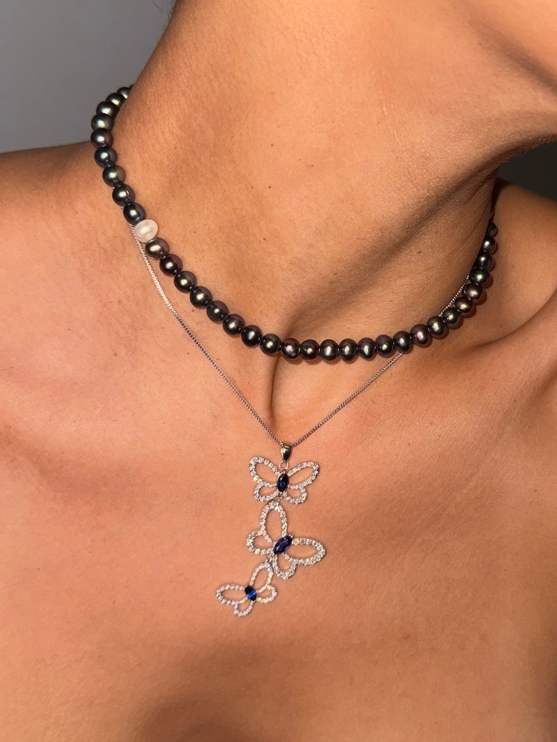The Butterfly Effect Pendant is a quiet reminder that the smallest moments can shift everything. Three delicate butterflies cascade in perfect rhythm, each one pavé-set and anchored by marquise center stones that can be customized to reflect your own story.