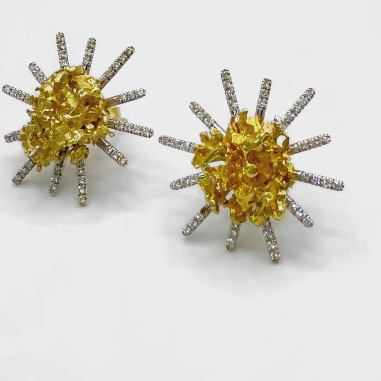 Rare and unique, these 21k nugget gold earrings showcase the exceptional beauty of high-purity gold. Accented with radiant diamonds, their raw, textured design strikes the perfect balance between edgy sophistication and timeless elegance. The rich, luminous 21k gold adds a sense of rarity and luxury, making these earrings an unforgettable choice for anyone who values distinctive, one-of-a-kind pieces. These earrings are a true treasure for any jewelry lover.