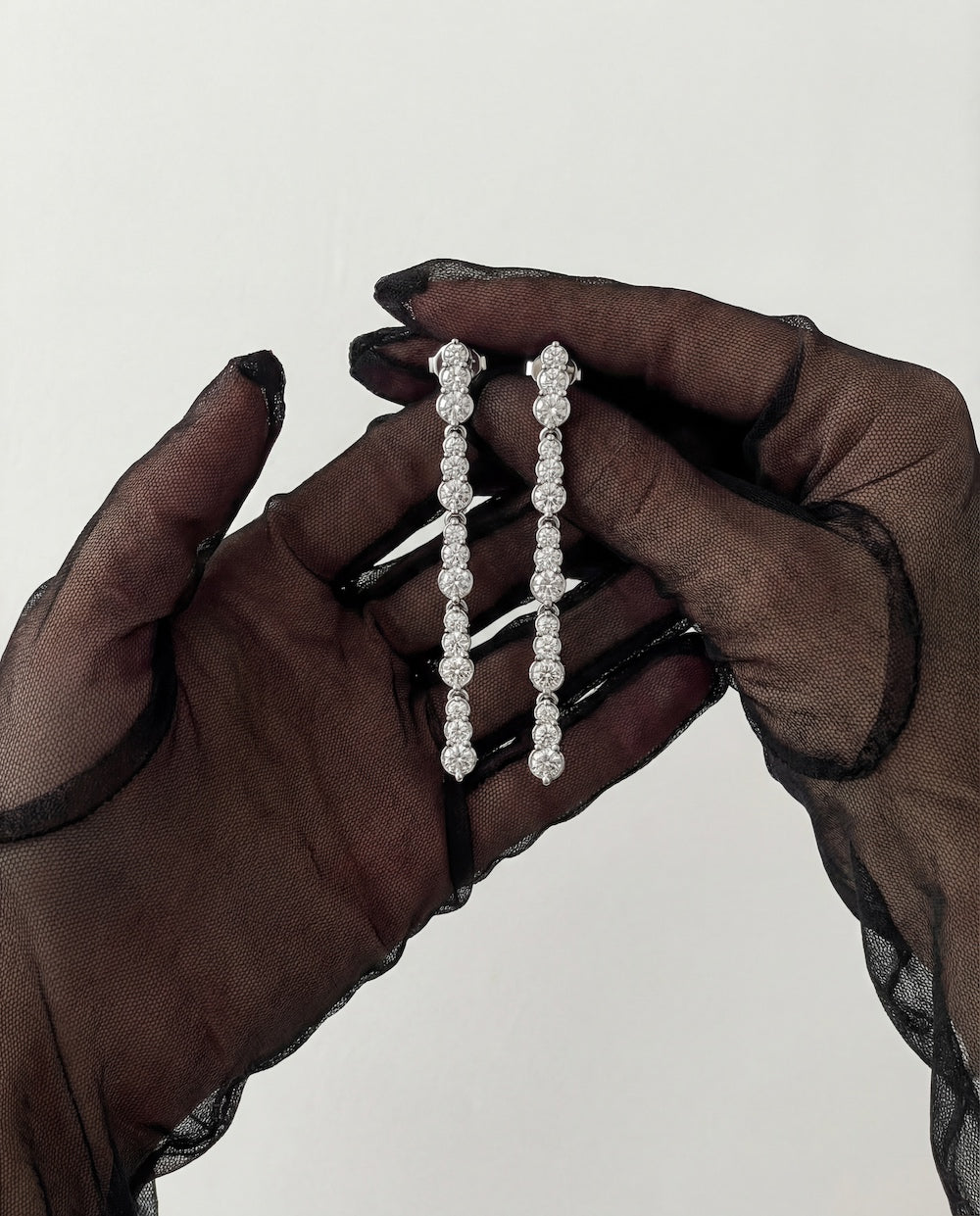 Minimal, flirty, and quietly fabulous — the Skinny Dips are your new go-to for just the right amount of shimmer. Designed with thirty sustainable diamonds in a slender vertical line, they catch the light with every little move. Whether you're dressing up denim or adding drama to a night out, these drops deliver.